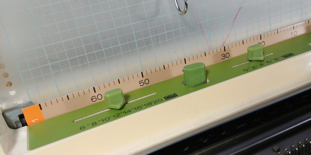 Hay gente que me pregunta para que sirve esa ranura en su máquina de tejer, como por ejemplo, en la Brother KH-881, es el Knit-Leader, sistema de patronaje asistido que viene implementado en la tricotosa. En caso que no lo tengas, sólo unos pocos modelos lo llevan incorporado, lo podrás adquirir por separado y acomplarlo a tu tricotosa.