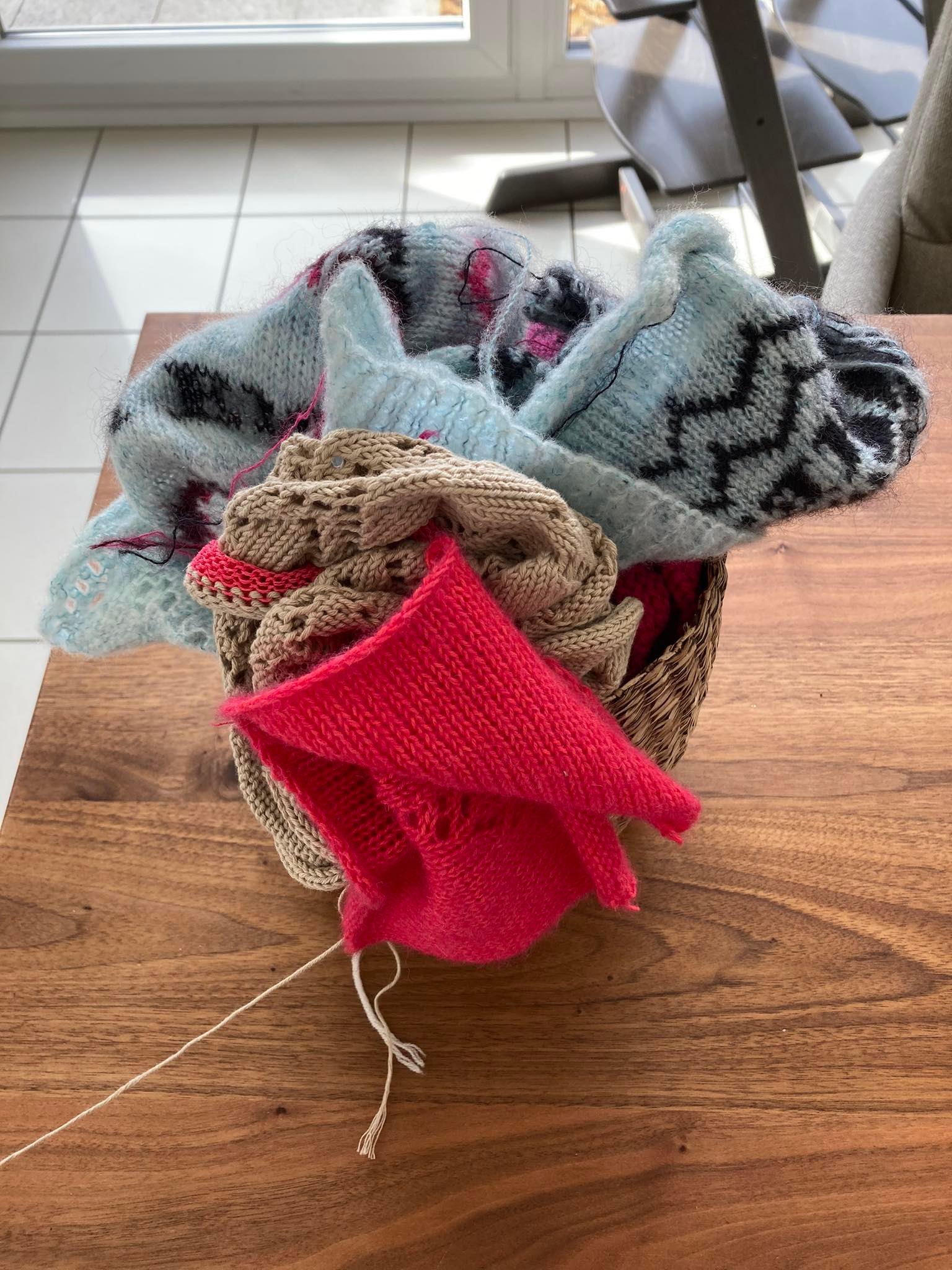 Jeanette: After my twin children were born, I purchased a KH 910 knitting machine and added AYAB to it. However, I quickly found myself with no time to use it and had to set it aside for a while. Last year, when my third child started attending kindergarten, I decided to give knitting another try and dusted off my machine.