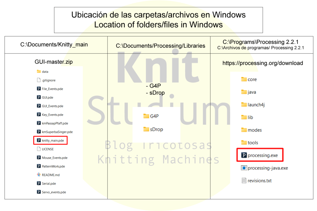 This is a program created by the developers to control the knitting machine with a simple graphical interface. This program is not an executable file directly. It is created in Processing and you need to download this program previously for it to work inside it.