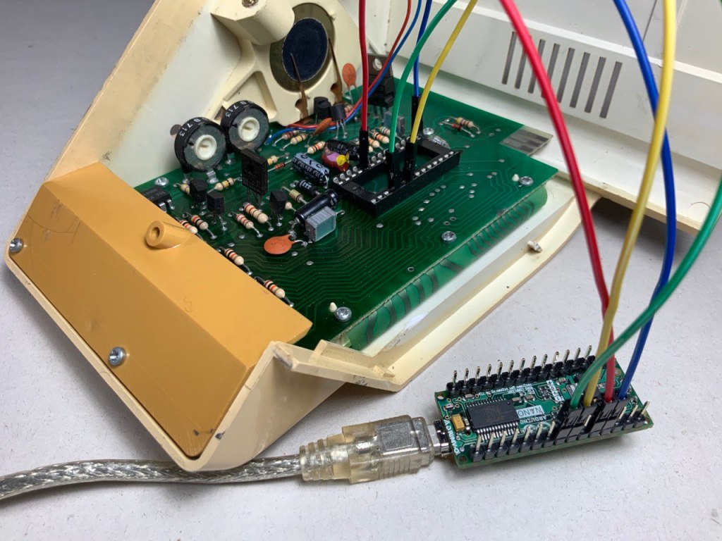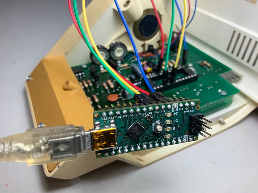 The ARDUINO NANO stays inside the programming panel, the USB cable to the computer comes out from underneath it.