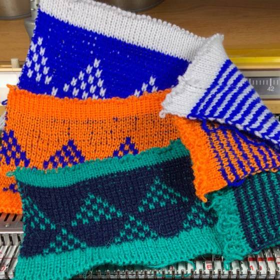 Esta máquina de tricotar es de la marca Coppo. Contiene más de cuatrocientas agujas y se fabricó posiblemente en los … Más