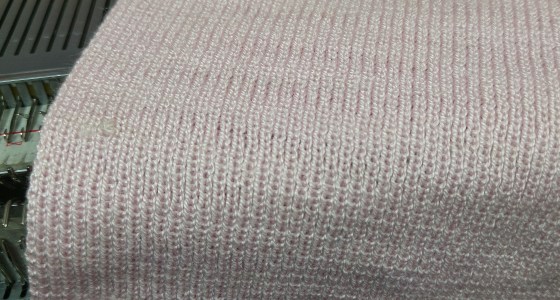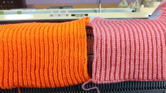 Esta técnica es bastante sencilla, todas las agujas que necesitemos para el ancho deseado se pondrán en funcionamiento, tanto en la tricotosa como en el Ribber.